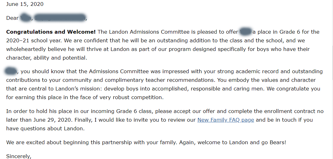录取院校: 兰登学校(Landon School)