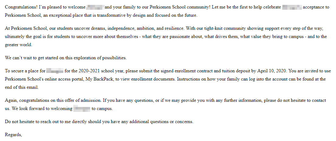 留学美国网李同学被伯克曼中学(Perkiomen School)录取
