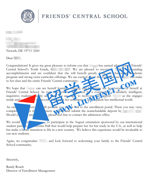留美网W同学被贵格会中央学校 Friends Central School录取offer展示