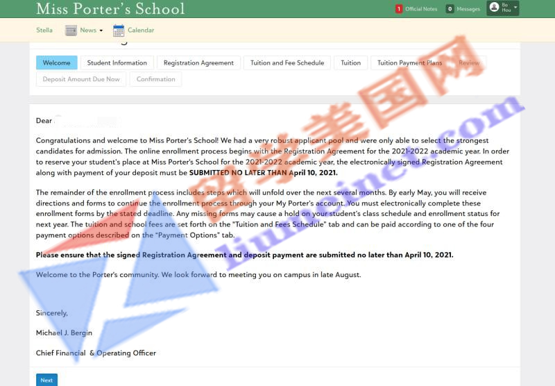 随着3.10录取的陆续发榜,留美网学生这几天也一直忙着收到录取offer~今天留美网再传录取捷报~恭喜留美网S同学喜获美国TOP50顶尖寄宿女校波特女子高中Miss Porter's School的录取offer,S同学学习优异,综合能力方面也很强,而且是提前一年进行规划!拿到这么好的录取offer离不开石老师、留美网老师多年的申请经验和人脉资源以及和学生和家长所有人的共同努力!让我们再次恭喜留美网S同学~希望她可以在美高旅途中收获助于自己的风景~