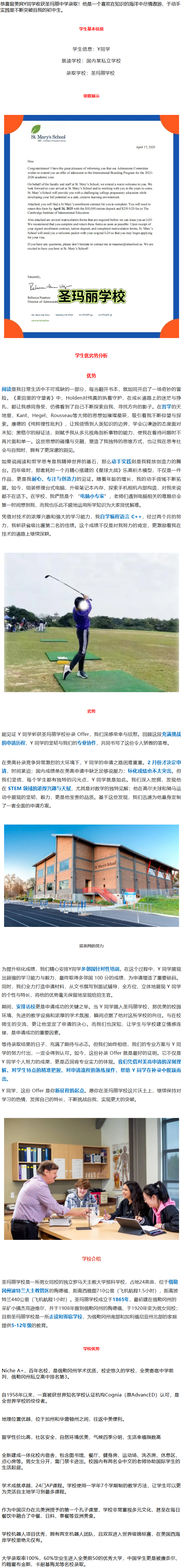 【录取喜报】恭喜留美网学子Y同学斩获圣玛丽学校 录取offer