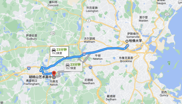 Harvard University哈佛大学约23分钟车程