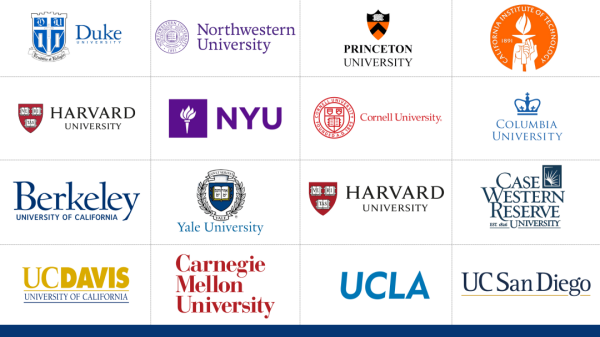 伯克利音乐学院、波士顿学院、波士顿大学、加州理工学院、加利福尼亚州立大学系统、卡内基梅隆大学、凯斯西储大学、哥伦比亚大学、康奈尔大学、杜克大学、哈佛大学、约翰霍普金斯大学、纽约大学、西北大学、佩珀代因大学、普林斯顿大学、伦斯勒理工学院、罗德岛设计学院、罗切斯特理工学院、斯坦福大学、雪城大学等。