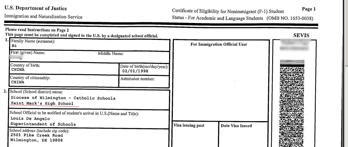 我们不杜撰名校案例,只展示给您绝对真实的案例,学校适合孩子最重要。下面是毕同学的I-20.