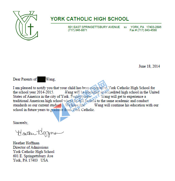 录取院校: 约克天主教高中