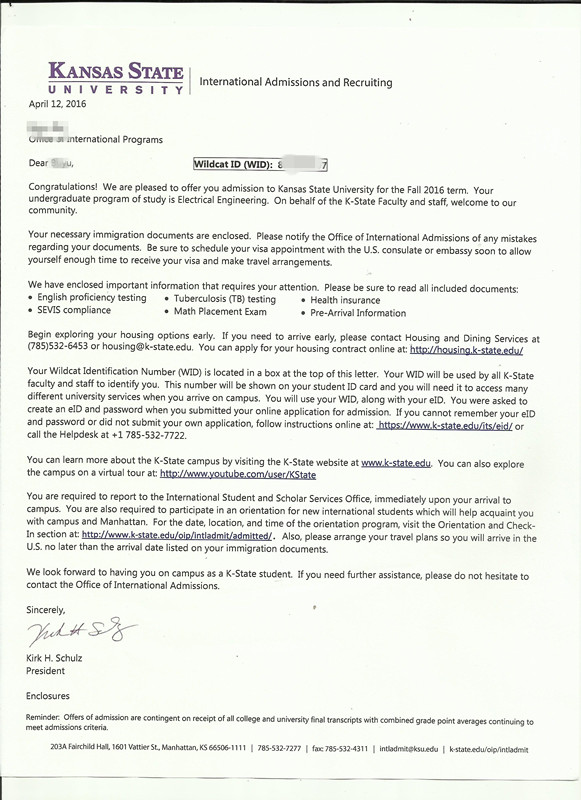 录取院校: 堪萨斯州立大学
