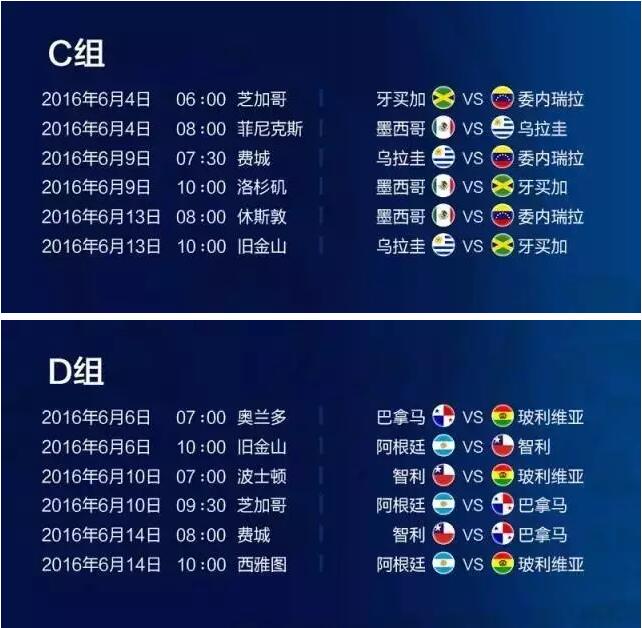 美洲杯赛程表