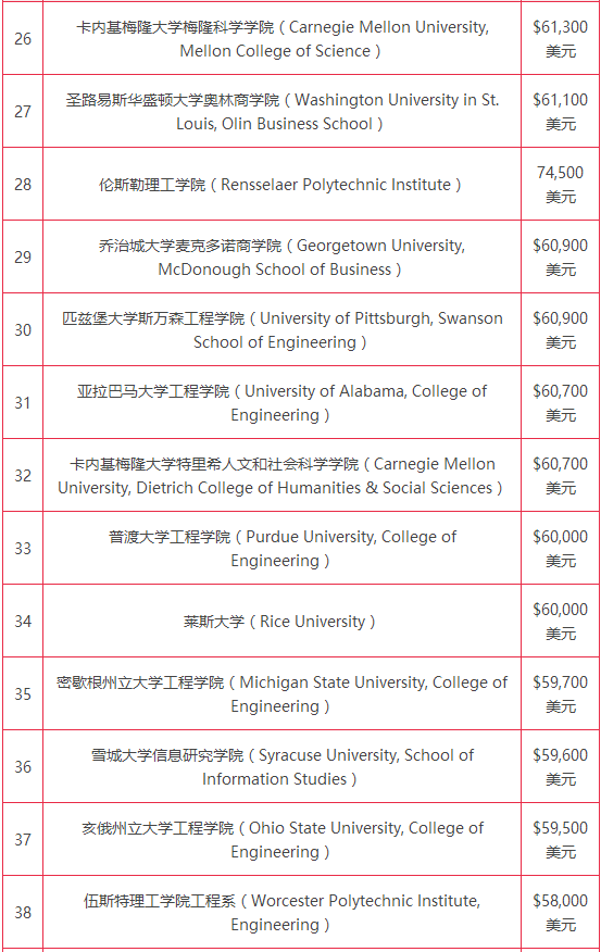 留美网小编提醒:由于学校收集的是全体学生的数据,可以说比薪资调查网站PayScale数据库中那些自行上报的薪资数据更为可靠。其实曾就存在争议的投资回报率调查进行过报道。通过提供自己的薪资数据,以换取相关网站收集的详细薪资数据,通常是因为他们想要换一份新工作或获得加薪。对于那些对目前工作的薪酬不满意的人而言,这些数据都是由他们自己填写的。这些数据则来自新近毕业的全体学生。