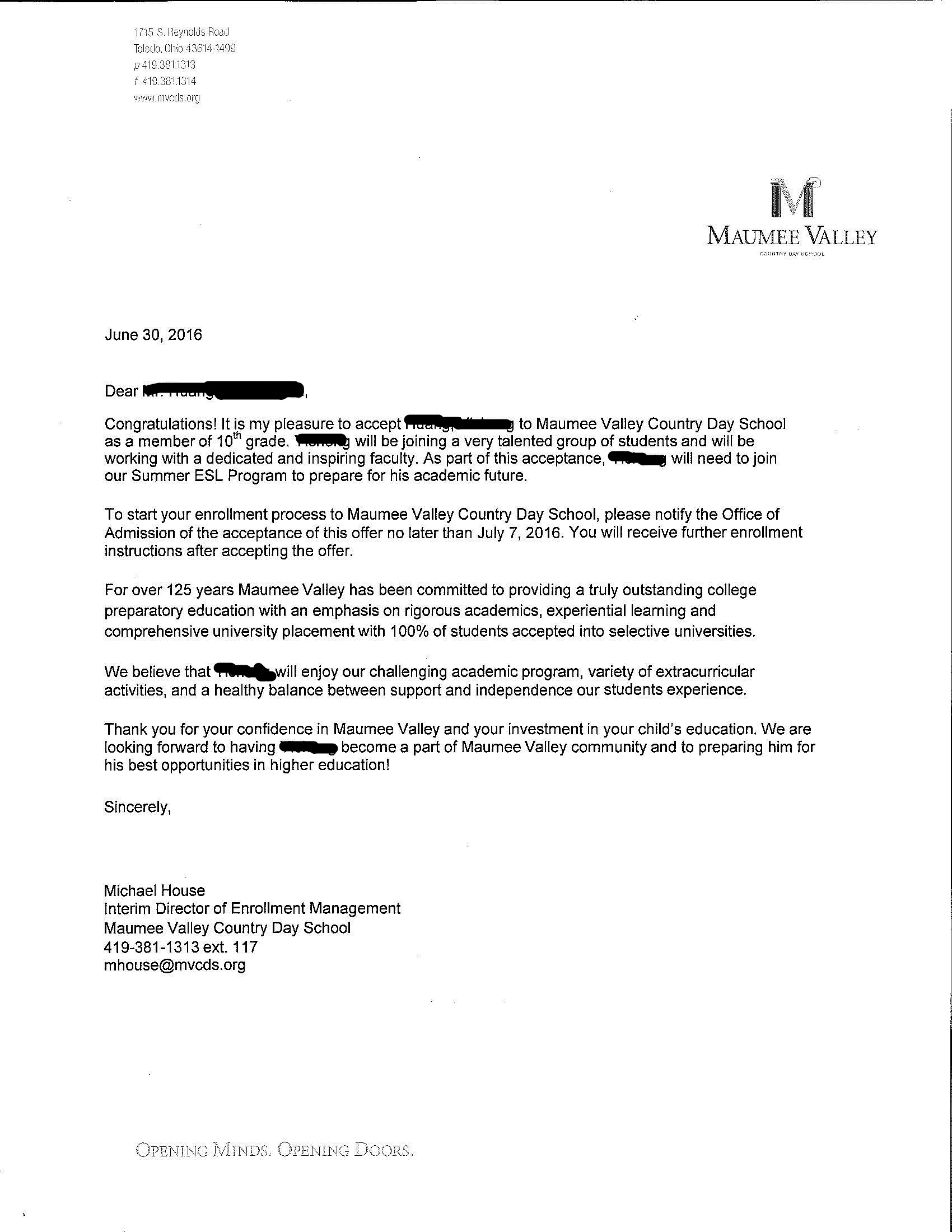 黄同学在6月底找到留美网,那时候他已经拿到其它美国中学的录取,但他感到不够理想。 又找到我们,希望能冲刺更好的学校,他对学校非常挑剔。那个时候时间已经很晚,好的学校几乎都没有名额了。另外黄同学想复读10年级,他的托福成绩也不够理想,很多学校对于毕业年龄有严格的规定,要求我们在7月1日之前必须拿到录取,对我们来说是一个非常大的挑战。