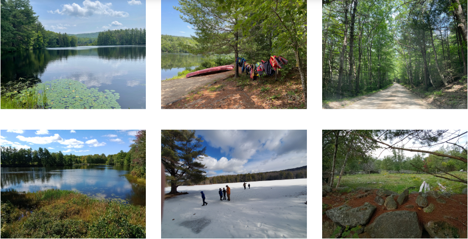 占地广袤,自然环境多样:占地1700英亩,罕布什尔学校拥有广袤的农田和森林,丰富的自然环境让许多野生动物生活在学校的自然环境当中。学校有占地4英亩和39英亩的两座湖泊,同事拥有海狸、鹿、火鸡、水獭、山猫等野生动物,学生在这广袤的校园之内可以尝试远足、露营、划独木舟、探索森林和湿地,在这里想要深入自然环境不需要离开校园。