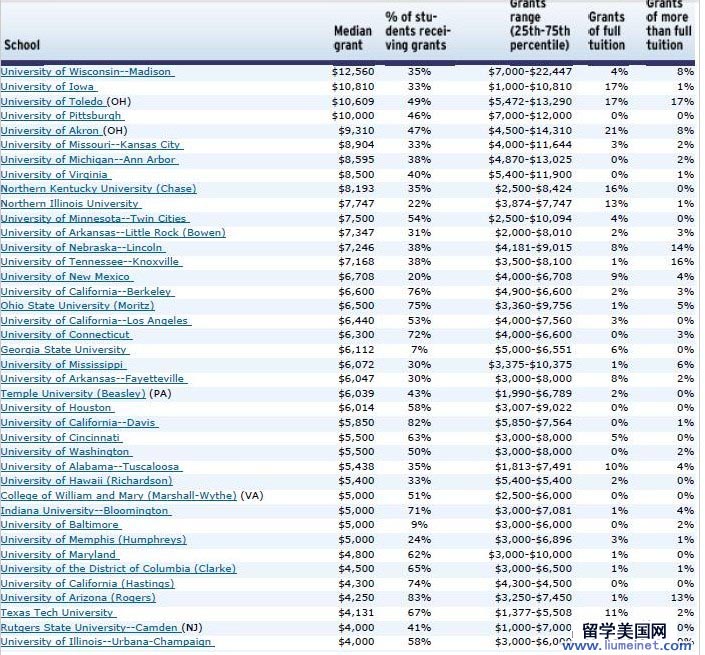 下面是美国公立综合类大学的奖学金发放·排名,供大家参考: