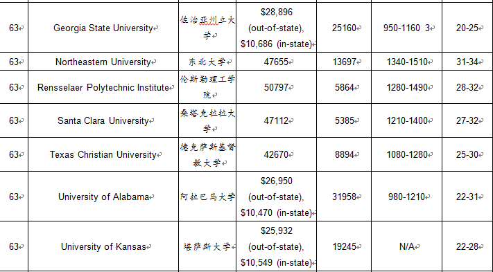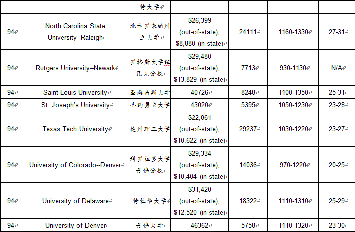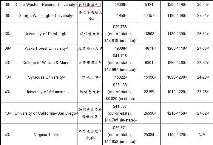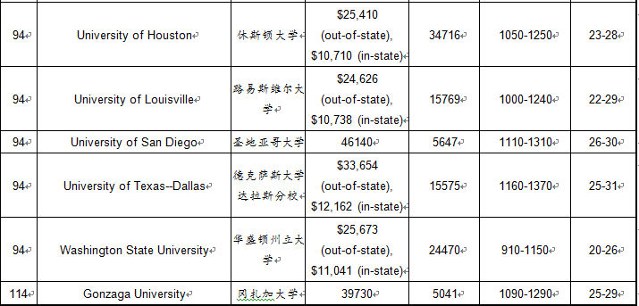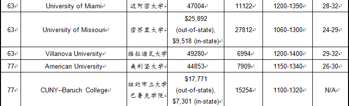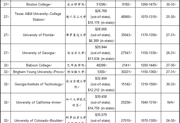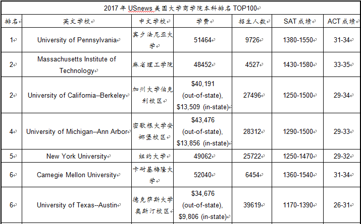 2017年USnews美国大学商学院本科排名TOP100
