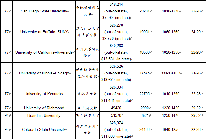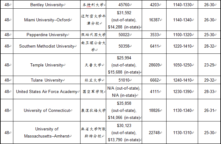 2022年USNews文理学院排名!