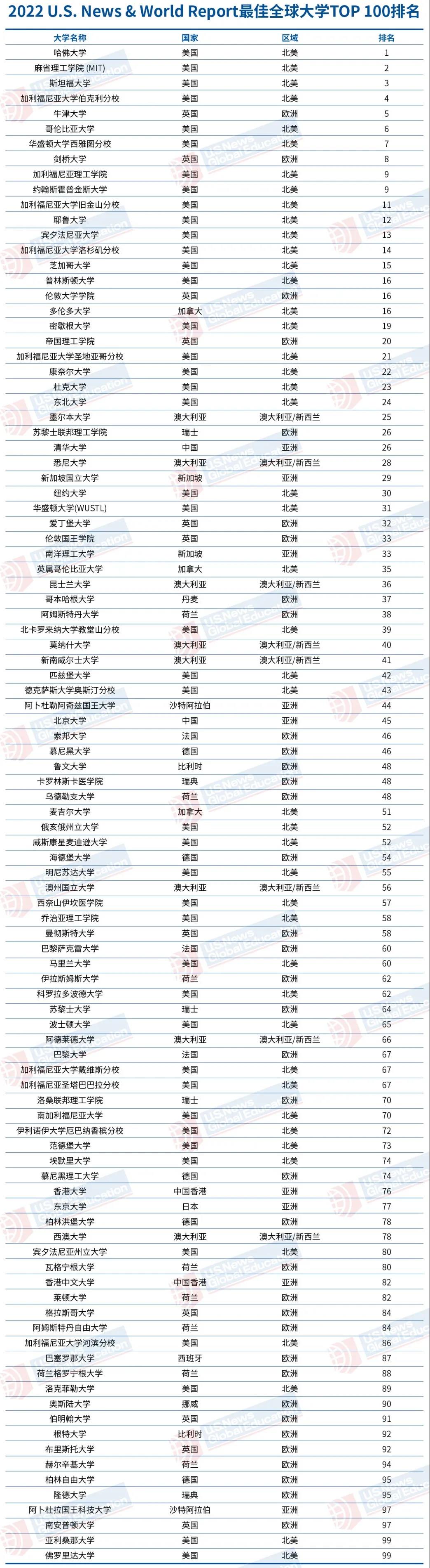最新!2022USNews世界大学排名!哈佛依然排名第一!清华再次上升!